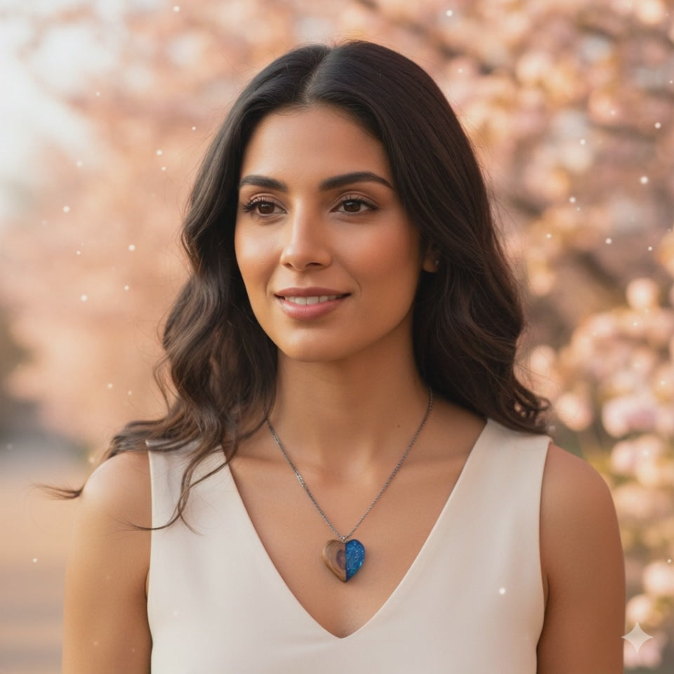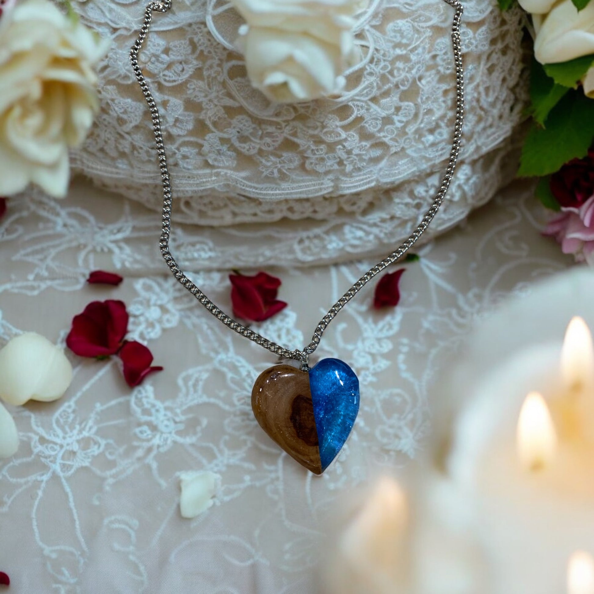 Laissez-vous charmer par la fusion de la nature et de l'art dans notre collier cœur en bois et résine. Fabriqué à la main avec passion, chaque pendentif raconte une histoire unique, grâce à l'harmonie parfaite entre la chaleur du bois naturel et l'éclat hypnotique de la résine bleue.
