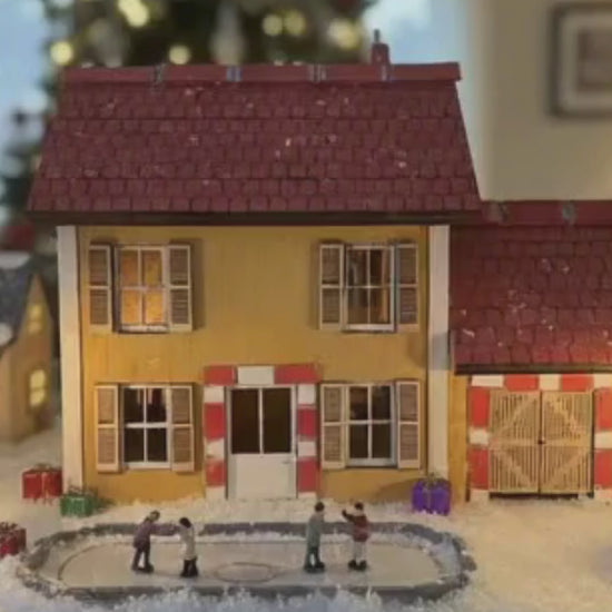 Chaque détail de cette maison, des volets peints aux tuiles du toit, a été réalisé avec passion. Elle a été pensée pour raconter une histoire : celle d'un foyer chaleureux au cœur d'un village animé, comme le montre notre mini-scène de patinage ! En achetant ce modèle, vous investissez dans une pièce de collection qui traversera les années.